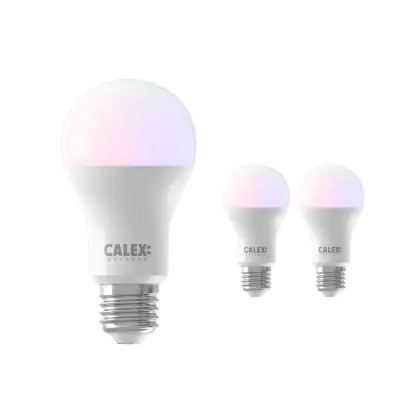 Descrizione Confezione Multipack 3x Calex Smart Tuya Wifi E27 Pera 8.5W 806lm - 822-840 Regolabile Bianca | RGBW - Dimmerabile - Sostitutiva 60W