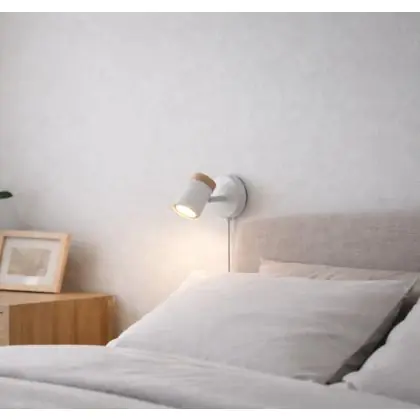 Descrizione D'Lite Luce Da Parete Beitem Metallo Ghiaccio Bianca FSC Legna | Adatto Per 1x GU10