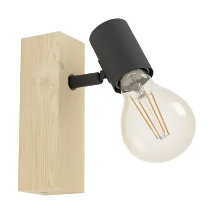 Eglo Luce Da Parete Townshend 3 Legna Acciaio Nero | IP20 - Adatto per 1x E27