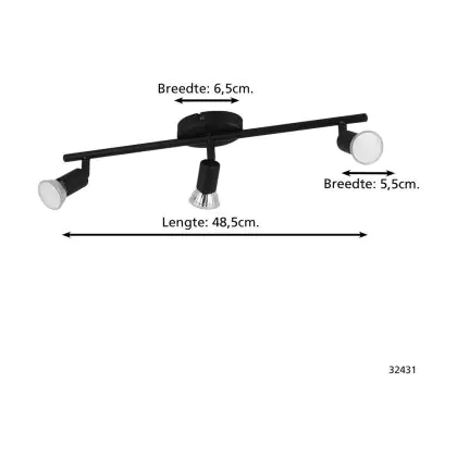 Eglo Luce da soffitto Buzz-LED Acciaio Nero 3x2.8W 3x250lm - 830 Luce Calda - | IP20 - Incl. 3x GU10