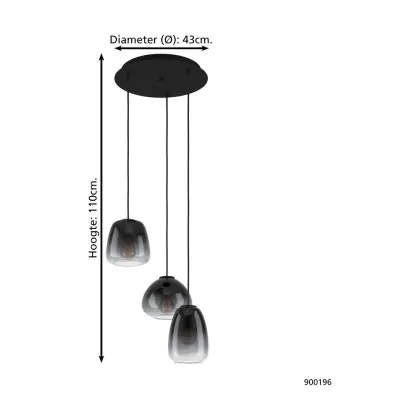 Eglo Luce Pendente Aguilares Acciaio Nero | IP20 - Adatto per 3x E27