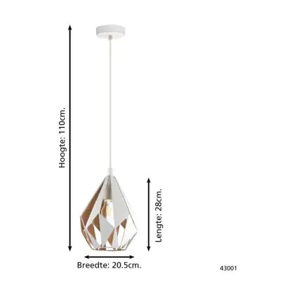 Eglo Luce Pendente Carlton 1 Acciaio Bianca Oro | IP20 - Adatto per 1x E27