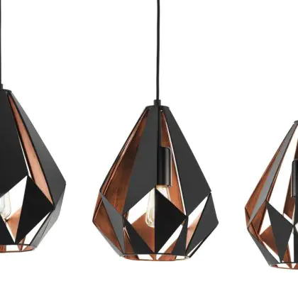 Eglo Luce Pendente Carlton 1 Nero, Rame | Adatto per 3x E27