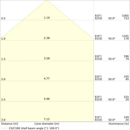 L'apertura del fascio luminoso indica l'angolo del fascio di luce proveniente da una lampada o lampadina. Si misura in gradi (D) e più piccolo è l'angolo, più piccola è l'apertura del fascio di luce.
