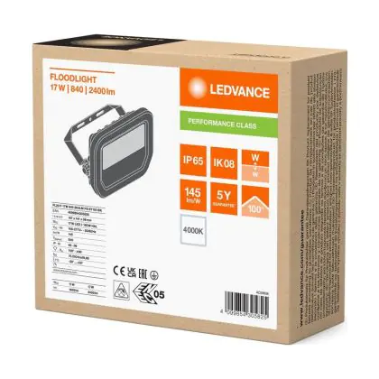 Descrizione Ledvance Proiettore LED Aluminium Nero 17W 2400lm 100D - 840 Bianco Freddo | IP66 - Simmetrico