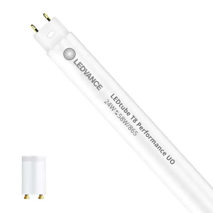 Il Ledvance Tubo LED T8 Performance (EM/Mains) Ultra Output 24W 3600lm - 865 Luce del Giorno | 150cm - Sostitutiva 58W è l’alternativa perfetta per il tubo fluorescente standard 58W nelle plafoniere con un reattore. Con questo tubo LED hai una garanzia di una vita media utile molto lunga e 5 anni Lampadadiretta.it di totale garanzia. .