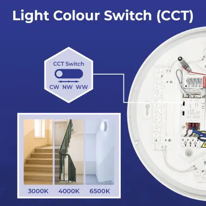 Per scegliere un apparecchio di illuminazione bisogna anche considerare dove verrà installato. Per esempio la luce di 2700 Kelvin (bianco molto caldo) e 3000 Kelvin (bianco caldo) creano un’atmosfera rilassante e piacevole. Questa tonalità è quindi molto adatta ad ambienti accoglienti o a zone generiche come corridoi, ascensori, disimpegni o pianerottoli. Una luce di 4000 Kelvin (bianco freddo), invece,è più luminosa e fresca ed è quindi adatta come illuminazione funzionale in uffici, aziende, scuole e biblioteche. La temperatura di colore di questa plafoniera LED è .