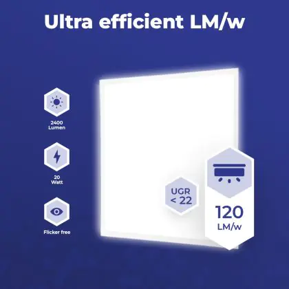 A seconda di dove verrà installato il pannello LED bisogna considerare anche l’indice di abbagliamento unificato. Infatti, per aree come scuole e uffici, servono apparecchi di illuminazione con indice UGR < 19. Questo pannello LED ha UGR < 22 - per corridoi e ingressi .