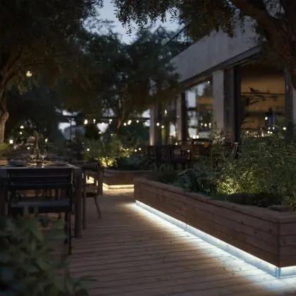 Questa fonte di luce può sempre essere utilizzata per l'illuminazione d'accento. Per usarla invece come illuminazione generale bisogna considerare l’emissione luminosa e l’apertura del fascio di luce. Questa striscia LED è lunga 5000 mm e ha una potenza luminosa di 410 Lumen. Dividendo il numero di Lumen per la lunghezza della striscia LED troverai la potenza luminosa per metro. Le strisce LED hanno generalmente un fascio di luce ad ampio angolo, che non fa eccezione per questo articolo: °. Clicca qui per scoprire quanti lumen servono in ogni stanza.