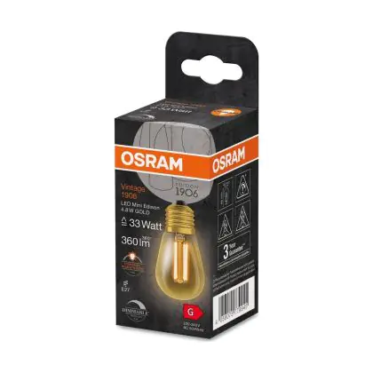 La Osram Vintage 1906 LED E27 Edison Filamento Oro 4.8W 360lm - 822 Bianco Molto Caldo | Dimmerabile - Sostitutiva 40W è la perfetta sostituzione per la tua lampada convenzionale 40W con attacco E27 grazie alla sua tecnologia LED. Passare a LED ti offrirà tanti vantaggi!